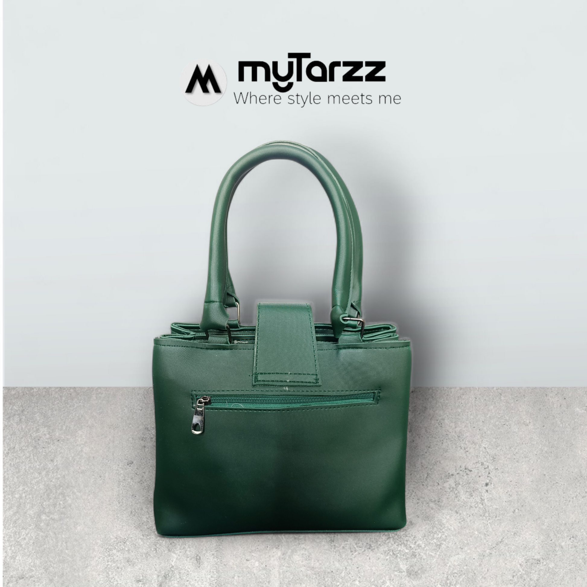 This stylish and elegant forest green tote bag is the perfect blend of classic design and modern charm. Made from smooth faux leather, its structured shape and clean lines create a timeless silhouette. The bag features a chic front flap with a sleek metal clasp, along with a sophisticated matching green tassel charm.