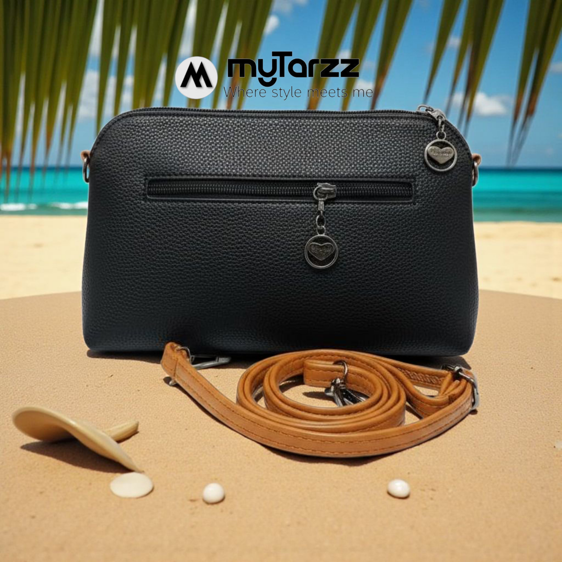 The perfect duo for versatile, day-to-night styling. This set includes a domed crossbody bag and a smaller matching wristlet pouch, both featuring a stylish perforated black finish. The large pouch has a distinctive tan vertical stripe down the center for an eye-catching detail. The set comes complete with a long, adjustable brown/tan strap and a shorter wristlet strap.