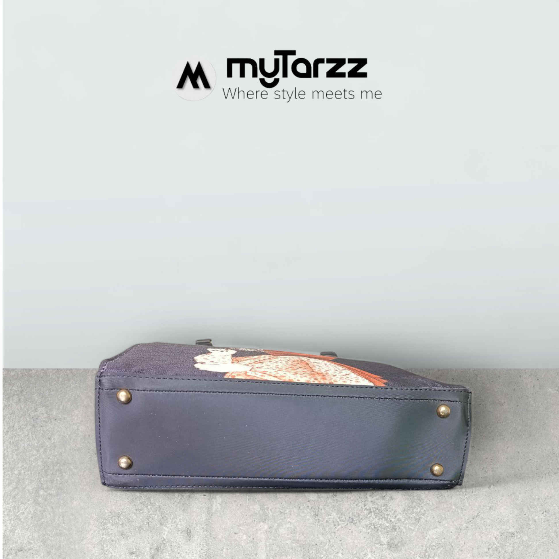 The design is elegantly finished with Black handles and accent tabs, creating a serene and sophisticated color palette. Crafted from a durable material, this spacious tote is perfect for carrying your daily essentials—from books and a tablet to your wallet and keys. It's more than just a bag; it's a statement piece that adds an artistic flair to any outfit.