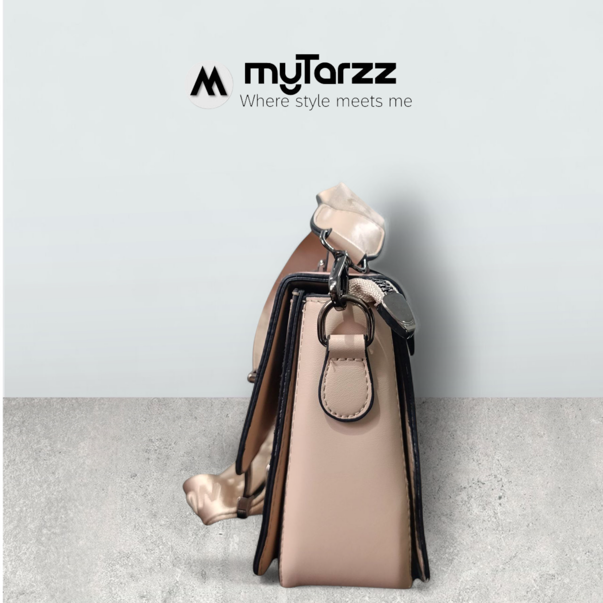 This stylish and elegant two-tone satchel bag is a perfect blend of classic design and modern functionality. Made from a smooth faux leather, it features a soft pastel pink top and a serene taupe bottom, creating a striking contrast. The structured shape, combined with decorative buckle straps and a sleek top handle, makes this a versatile accessory for any occasion.