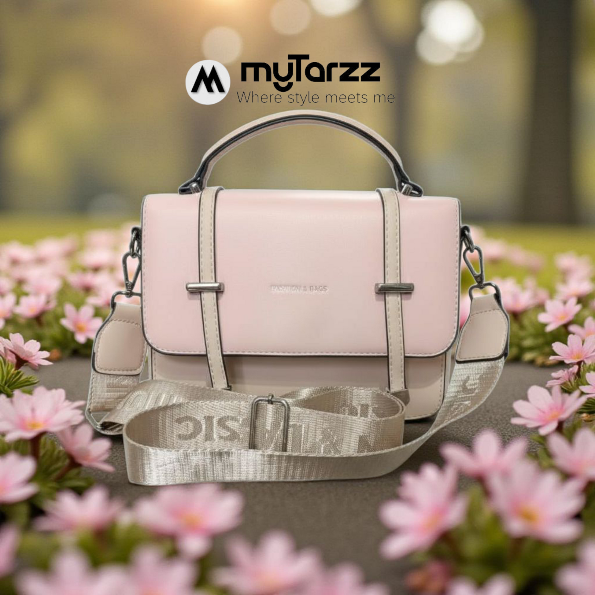 - Trendy Branded Strap: The wide, adjustable strap features a repeating pattern for a fashionable and comfortable shoulder carry.